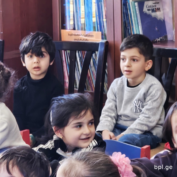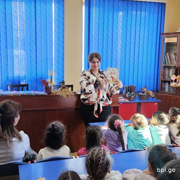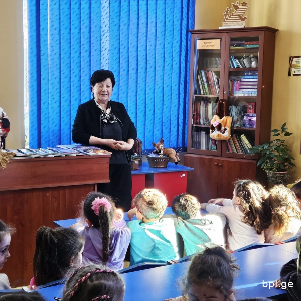 პატარა სტუმრებს მთავარმა ბიბლიოთეკარმა ლელა სურმანიძემ უმასპინძლა. ესაუბრა ქართული და უცხოური ზღაპრის გმირებზე, წარუდგინა ბავშვთა დარბაზის ფერადი, მხიარული და საინტერესო წიგნები და მათგან საყვარელი ზღაპრის გმირების თავგადასავლები მოისმინა. ასევე, წაუკითხა პატარა ბაჭია